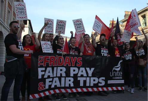 Trade unions are capitalising on the appetite among this generation of workers for change – as well as the potential for young, savvy social media users to extend the reach of their campaigns. McStrike is organised by the Bakers’ Union (BFAWU) while the TGI strike has the support of Unite. This is a strategic decision: both unions offer each other mutual support – and together they hope to build a broader movement across the service sector.