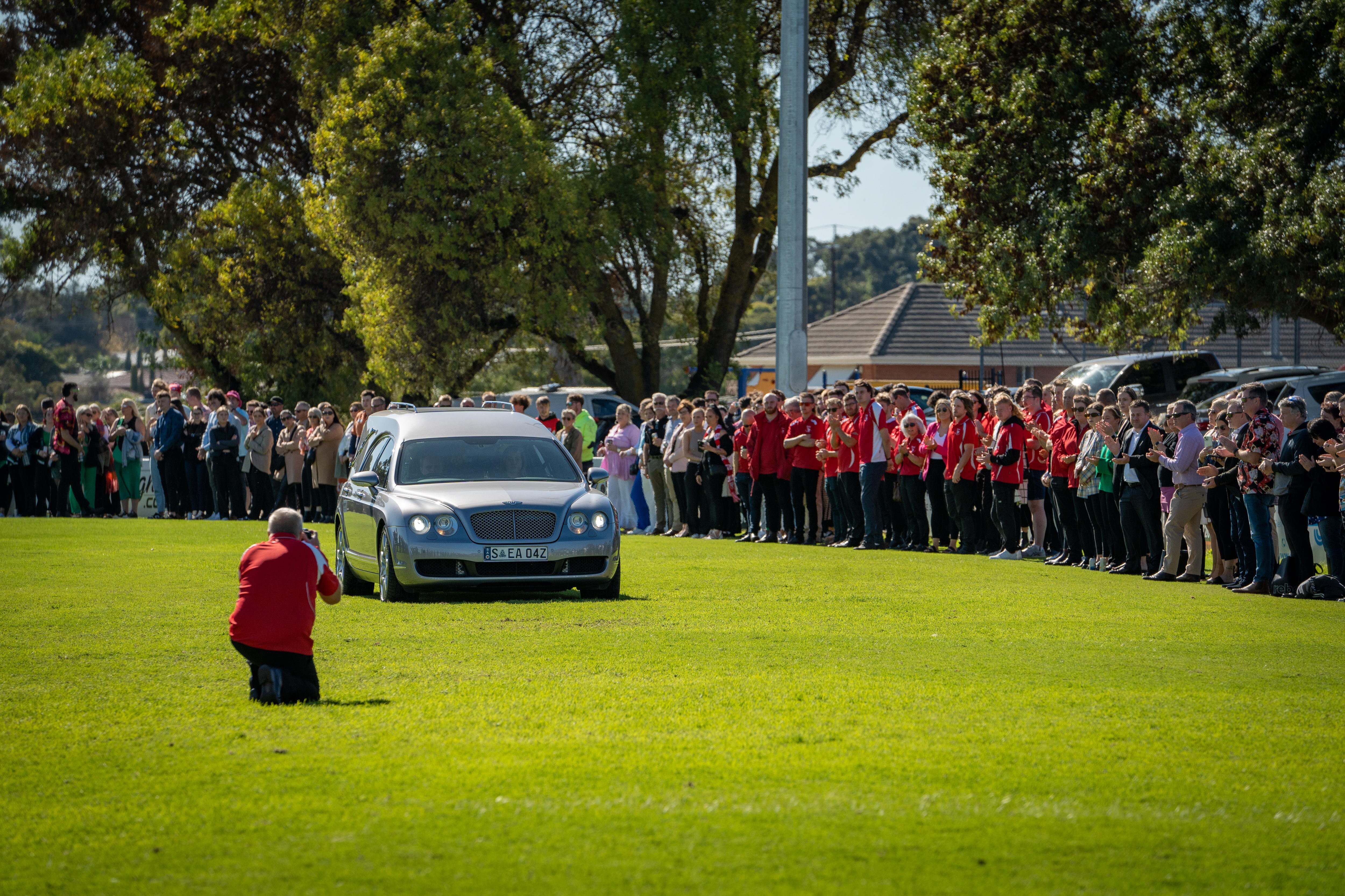 Today, family and friends gathered to celebrate the young athlete's life, with mourners encouraged to dress in pops of colour.
