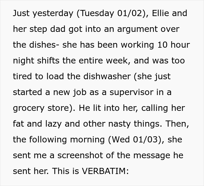 “Her stepdad has always treated her poorly, especially in comparison to her brothers. It was a risky decision to move back in, but her goal to save for college was/is extremely important to her,” the OP told Bored Panda, adding that her friend has since moved in with her and her boyfriend to a spare room in their house.