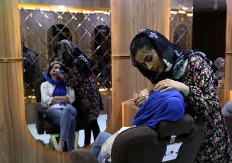 She wore a bright yellow blouse that draped off her shoulders as she worked, a style that’s a bit daring even in the all-women space of the salon. It would have been totally out of the question under the Taliban, who ruled until the 2001 U.S.-led invasion. In fact, the Taliban banned beauty salons in general, part of a notoriously harsh ideology that often hit women and girls the hardest, including forbidding them education and the right to work or even to travel outside their home unaccompanied by a male relative.