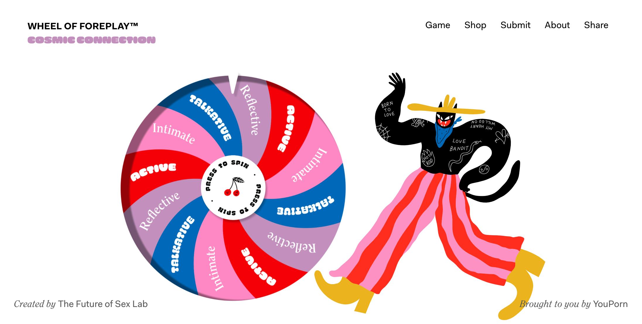 Not one to be left behind, sex-tech is trying to offer coronavirus-themed solutions for homebound (and most probably sexually frustrated) people, including singles, couples, and those in long-distance relationships. To spice things up, YouPorn just collaborated with the Future of Sex Lab to create an intimacy-booster in the form of the "Wheel of Foreplay."