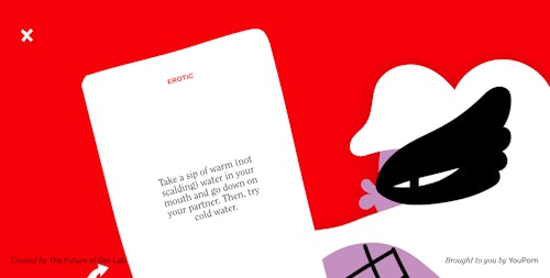 People can pick from an ever-growing (ahem) virtual deck of categories detailing themes like the physical-oriented "Push It Real Good," the more cerebral "Cosmic Connection," the "Some Like It Hot" selection, which apparently "feeds sensual connection," and a lot more.
