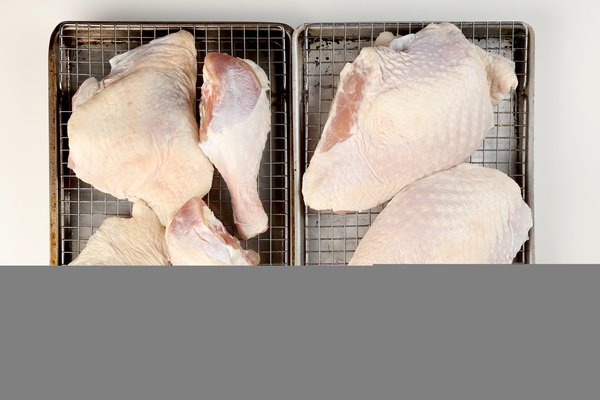 Take the turkey pieces from the brine, and set the brine free by pouring it down the drain. Put the turkey pieces on a wire rack over a sheet pan and set them in the refrigerator overnight to dry.