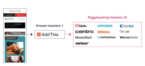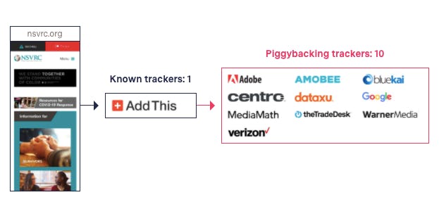 - Trackers from different companies were communicating with each other to confirm the identity of visitors to a website for victims of sexual violence.