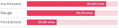 The second most common tracker we found on popular sites: Facebook. Blacklight found its pixel on a third of popular sites we scanned. Facebook’s trackers can follow you even if you’re not logged in to Facebook and link your browsing history to your profile for ad targeting. Website operators include the pixel to measure clicks from their ads on Facebook’s platforms.