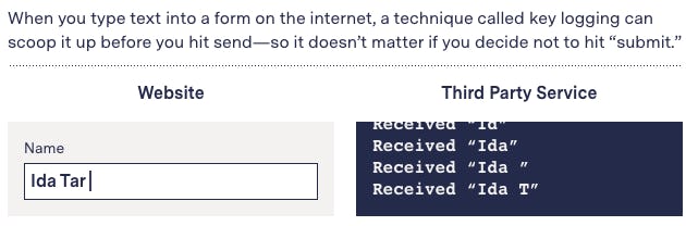 More than 200 popular websites used a particularly invasive technique that captures personal information people enter on forms — like names, phone numbers, and passwords — before they hit send. It’s called “key logging” and it’s sometimes done as part of session recording.