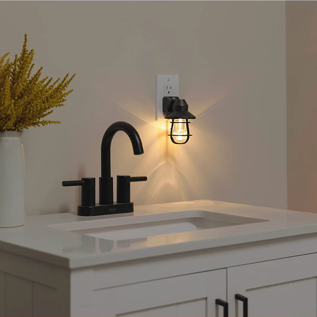 Not all night lights are made for kids — this one is made with a black cage around the bulb that gives it a rustic, farmhouse look. It also turns itself on or off depending on how bright the room is, and the LED bulb uses less energy than incandescent ones, helping you save money on your monthly utility bill.