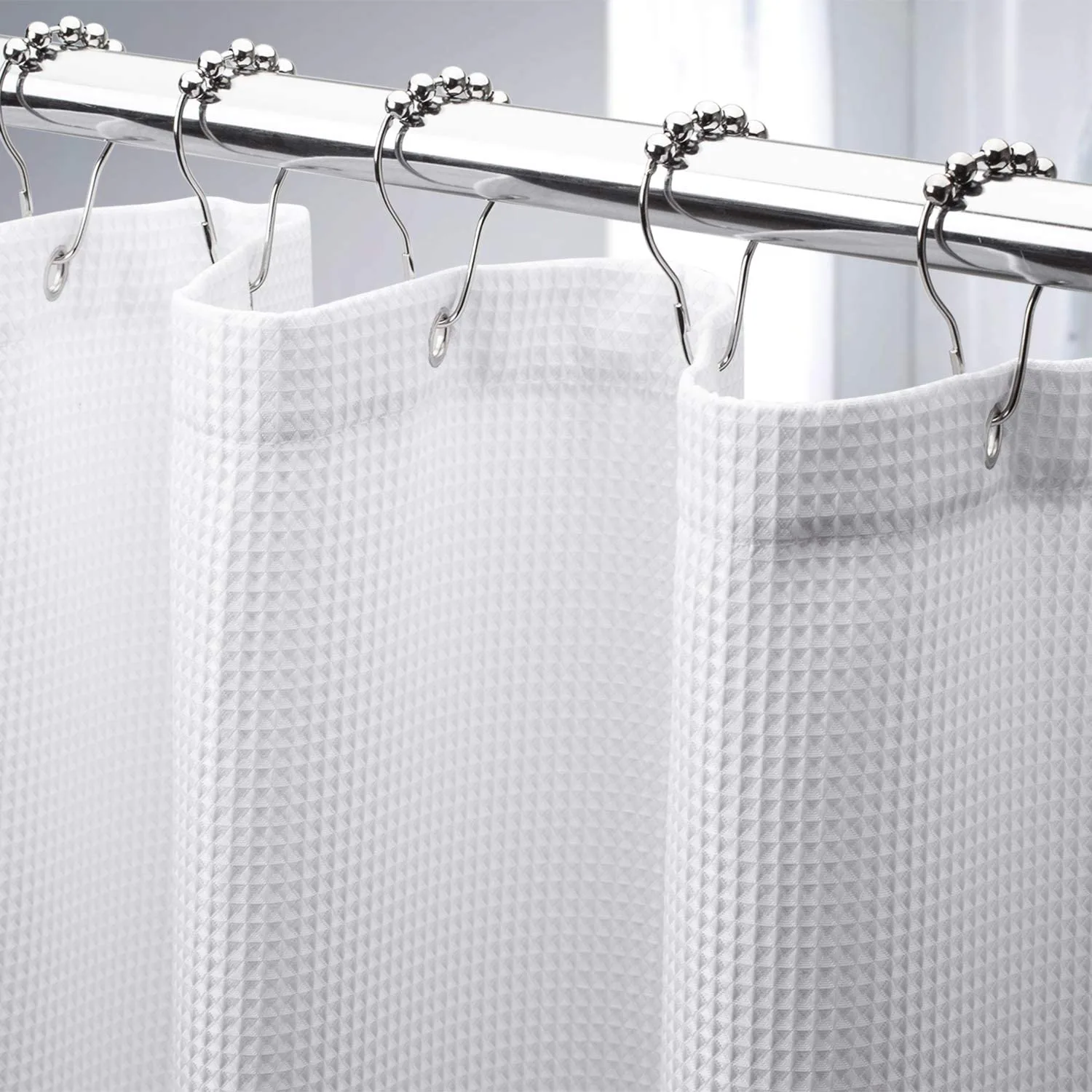 Not all shower curtains are created equal. This one is made from heavy-duty polyester to help keep it from billowing out of the tub when you’re trying to bathe. It’s also soft and moisture-resistant, with a waffle weave that makes it look like something straight out of a fancy hotel. “It's a nice heavy fabric and it looks great,” raved one reviewer. “The fold marks steamed out really nicely and I like the metal grommets.”