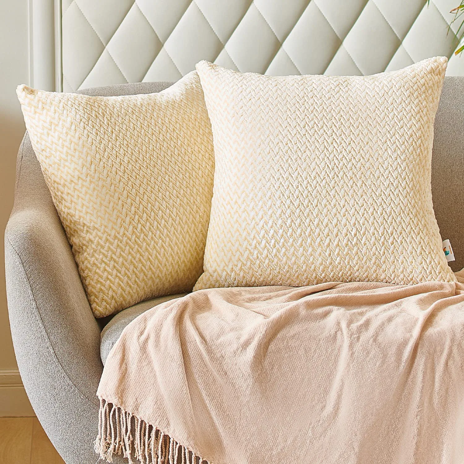 3. A pair of throw pillow covers with a cozy jacquard weave