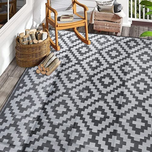 Elevate your outdoor spaces with this chic, reversible patio rug. Its timeless design complements any setting, and it’s UV stabilized to resist fading. So while it’s stylish enough to be displayed indoors, it can handle the elements, giving your patio or deck that seamless blend that Steffensmeier describes.