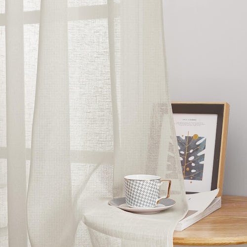 Crafted from a luxurious linen blend, these sheer curtain panels boast a unique open-weave texture that enhances any room with a vintage or casual flair. The semi-transparent material balances light and privacy, creating an airy, breathable feel. Versatile in design, they are ideal for anyone seeking privacy without sacrificing style. Plus, they're a breeze to care for — simply machine wash, tumble dry, or quick iron.