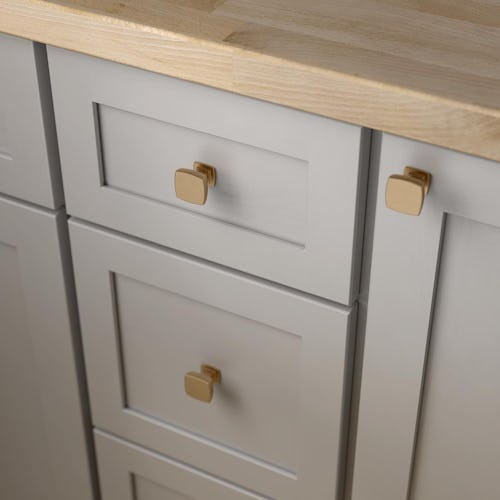 “Swapping out dated cabinet knobs, drawer pulls, and light fixtures with modern alternatives can instantly modernize a space,” says Hintlian. “We recommend the Franklin Brass Parow kitchen cabinet knobs for their sleek design and durability.”
