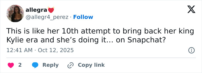 The ad not only launched her new line of lip glosses at the time but also marked her “King Kylie” era, which stretched from her teens to her early 20s.