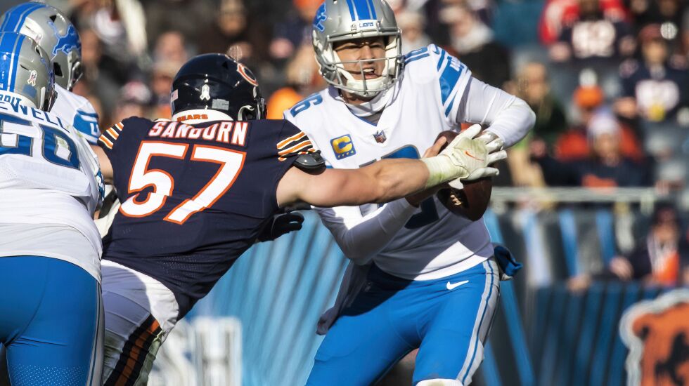 The Bears have been heading in the opposite direction in their first season under Eberflus and defensive coordinator Alan Williams. In the first seven games, the Bears’ defense was encouraging, if not actually good: 12th in the NFL in yards (330 per game) and tied for seventh in points (18.9 per game). Even the worst game — 27 points allowed against the Packers in Week 2 — would have been good enough to win any of the last three games.