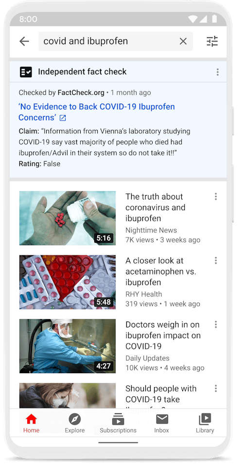 Many users will never encounter YouTube’s fact-check panel; it only appears in certain situations, and that probably doesn’t include weird memes and cat videos. But the panel should appear in the most relevant cases, like when users are searching for information about the pandemic.