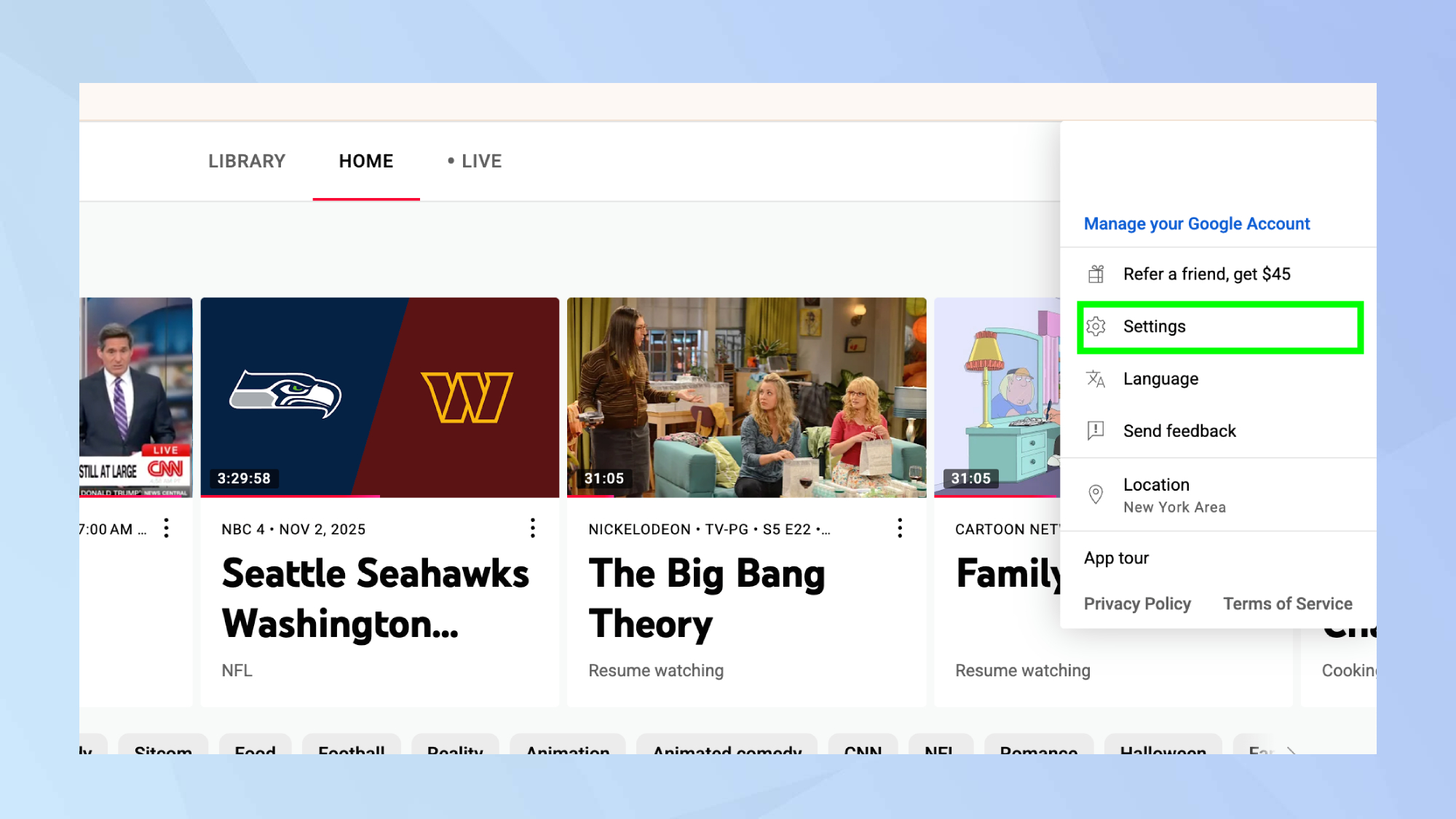 1. Log in to Youtube TV