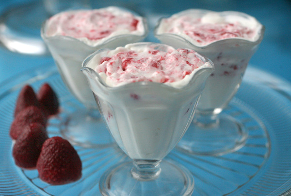 My final dessert is a diabetic version of a parfait, made entirely without sugar. In place of ice cream, it uses a mixture of Greek yogurt and whipped cream (the cream, of course, is whipped without sugar). For the fruit filling, you simply swirl in some sugar-free jam.