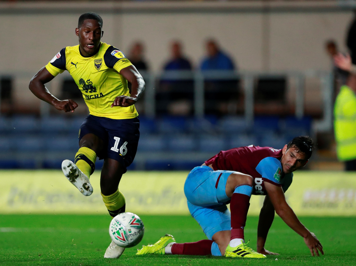 Soccer Football - Carabao Cup - Third Round - Oxford United v West Ham United - Kassam Stadium, Oxford, Britain - September 25, 2019 Oxford United's Tariqe Fosu scores their third goal Action Images via Reuters/Andrew Couldridge