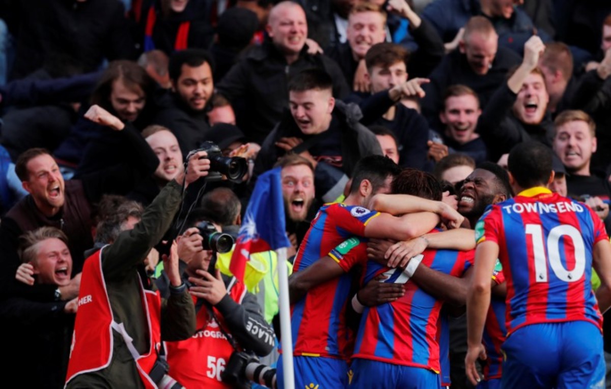 Soccer Football - Premier League - Crystal Palace vs West Ham United - Selhurst Park, London, Britain - October 28, 2017 Crystal Palace's Wilfried Zaha celebrates scoring their second goal with team mates and fans REUTERS/Eddie Keogh