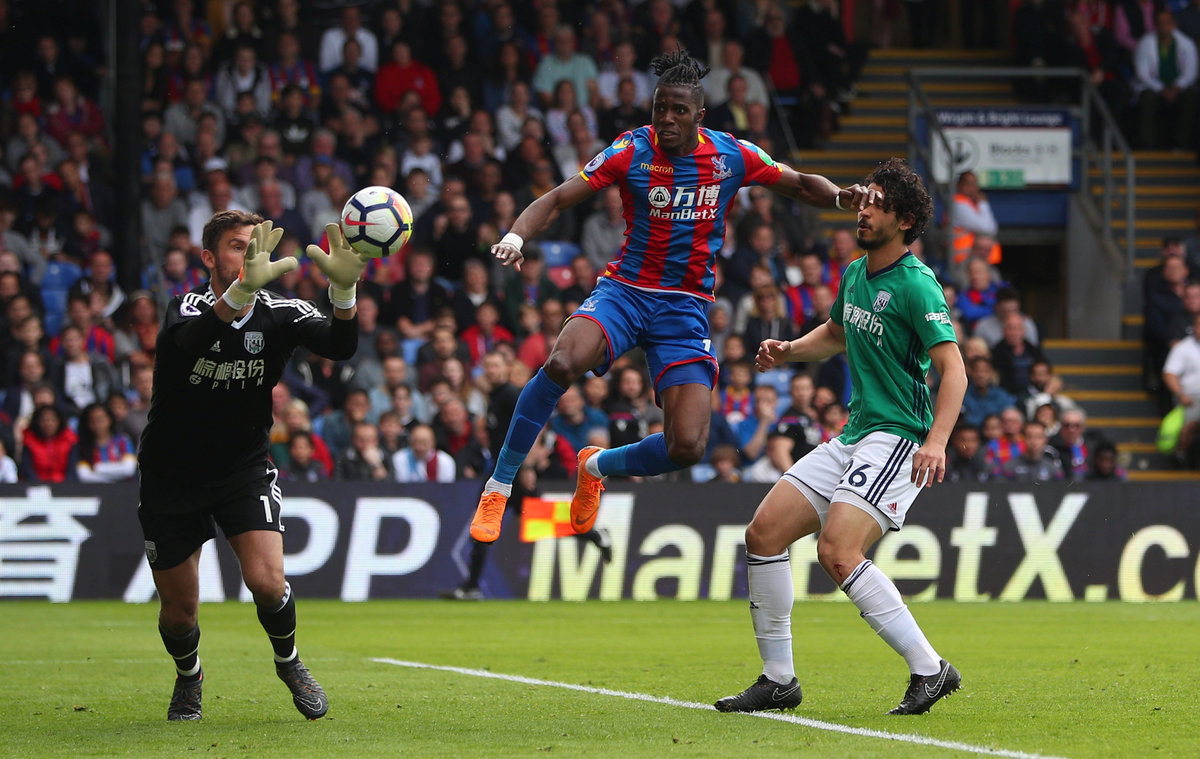 Soccer Football - Premier League - Crystal Palace vs West Bromwich Albion - Selhurst Park, London, Britain - May 13, 2018 West Bromwich Albion's Ben Foster collects the ball as Crystal Palace's Wilfried Zaha pressures REUTERS/Hannah McKay