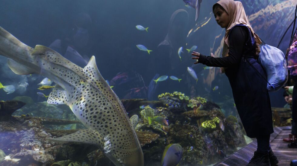 On Monday she swam through the waters of the Shedd’s Wild Reef Shark Habitat, unsurprisingly oblivious to the loss of her two babies or the news conference taking place on the other side of her glass enclosure.