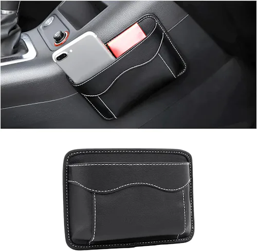 A car seat pocket made of sleek faux leather