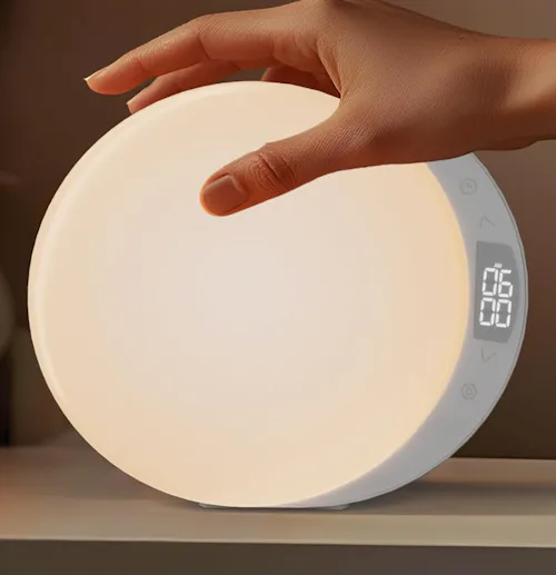 A sunrise alarm clock with soothing sounds