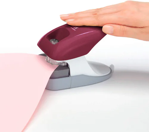 A staple-free stapler that attaches 10 pages at a time