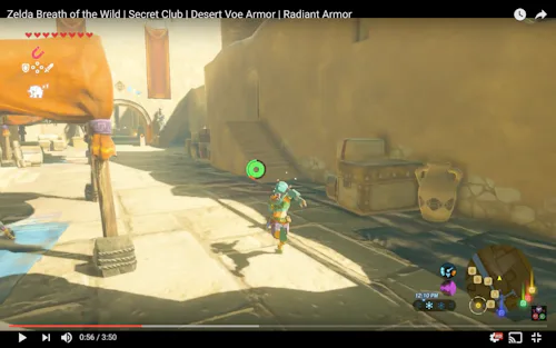 If wearing the Gerudo set isn't your thing, you can also get another set of BOTW heat resistance gear once you're inside the city proper, courtesy of the quest "The Secret Club's Secret." If you go to the back door of the Gerudo clothes shop, you'll be asked to provide a password: three letters and a symbol. Get it wrong and they'll turn you away, but get it right and you'll gain access to a secret shop.