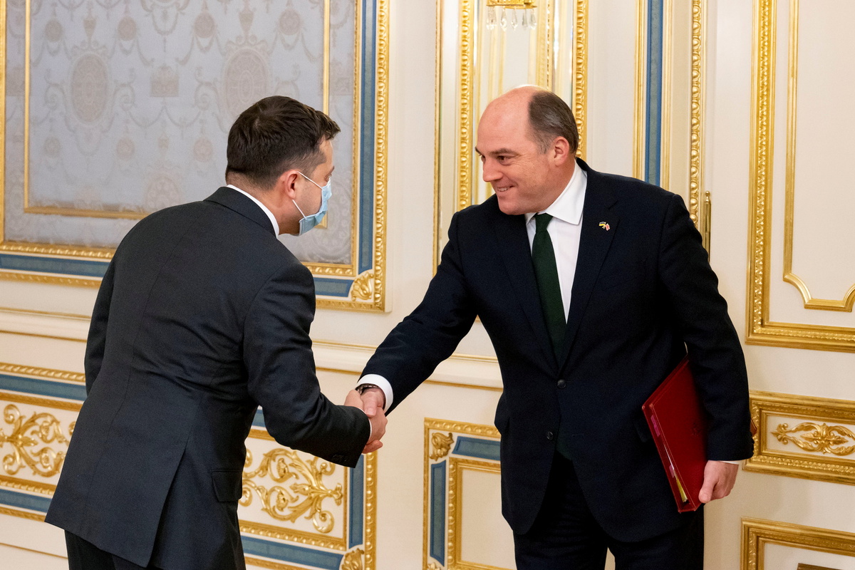 Wallace visited in a show of support at a time when Ukraine and NATO countries have expressed concern about Russian troop movements near Ukraine's borders.