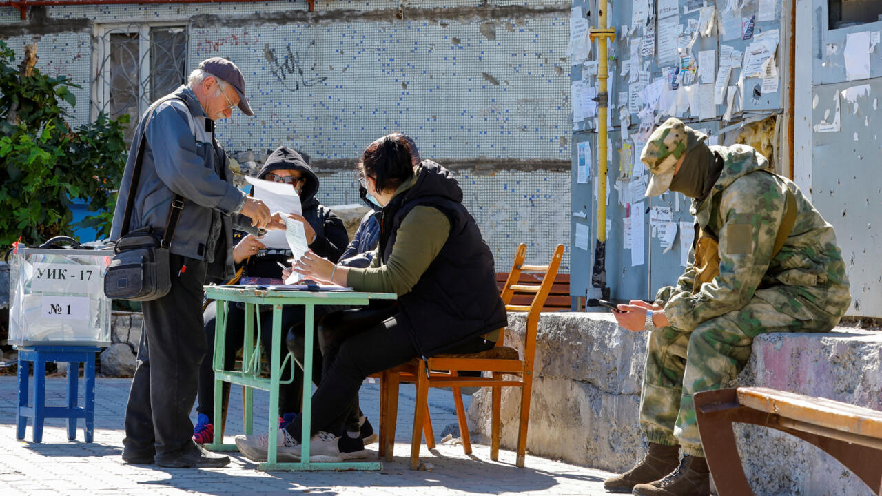 Russian-installed officials took ballot boxes from house to house in what Ukraine and the West said was an illegitimate, coercive exercise to create a legal pretext for Russia to annex the four regions.