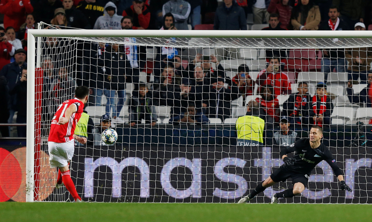 Nine minutes later, Zenit's Douglas Santos was given a second yellow card for handling in the penalty area Pizzi converted the penalty for Benfica.