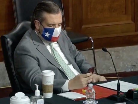 Social media users were quick to criticise the senator for using the phone during the testimony, with @kachelme1 tweeting: “Why does @tedcruz even bother coming to committee?”