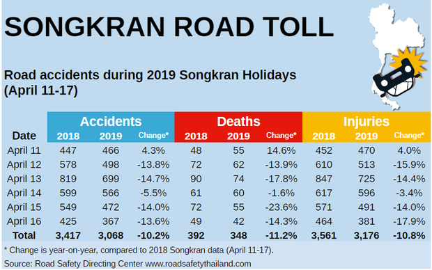 The number of traffic accidents, deaths and injuries dropped this year compared with the Songkran period a year ago, but Prime Minister Prayut Chan-o-cha said he was not satisfied with the statistics.