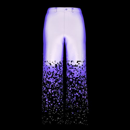 Harry Nuriev, founder of Crosby Studios, designed the collection after being inspired by the idea of marrying virtual reality and elements of the digital realm with the physical world. The singular pieces include a checkered suit, light shirt, pixel leopard print hoodie, disappearing pants, and video game pants. A variety of textures and colors are sprinkled throughout the collection alongside Crosby Studios’s signature pixelated print, which also appears within the pop-up’s interiors.