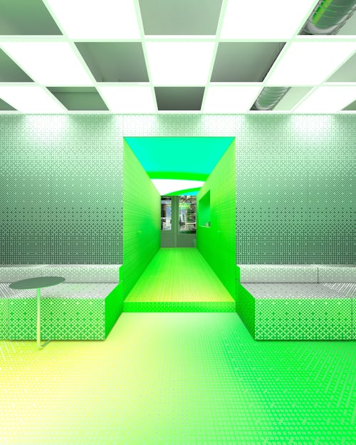 Located in New York City’s SoHo neighborhood, the space features a five-piece virtual collection designed by Crosby Studios, which also conceptualized the retail experience and its interior design. Rather than relying on traditional retail set-ups including clothing racks and a cash register, Crosby Studios designed the concept store as an interactive space where people are able to create, commune, and explore through content creation without being stunted by physical objects and inefficient processes.