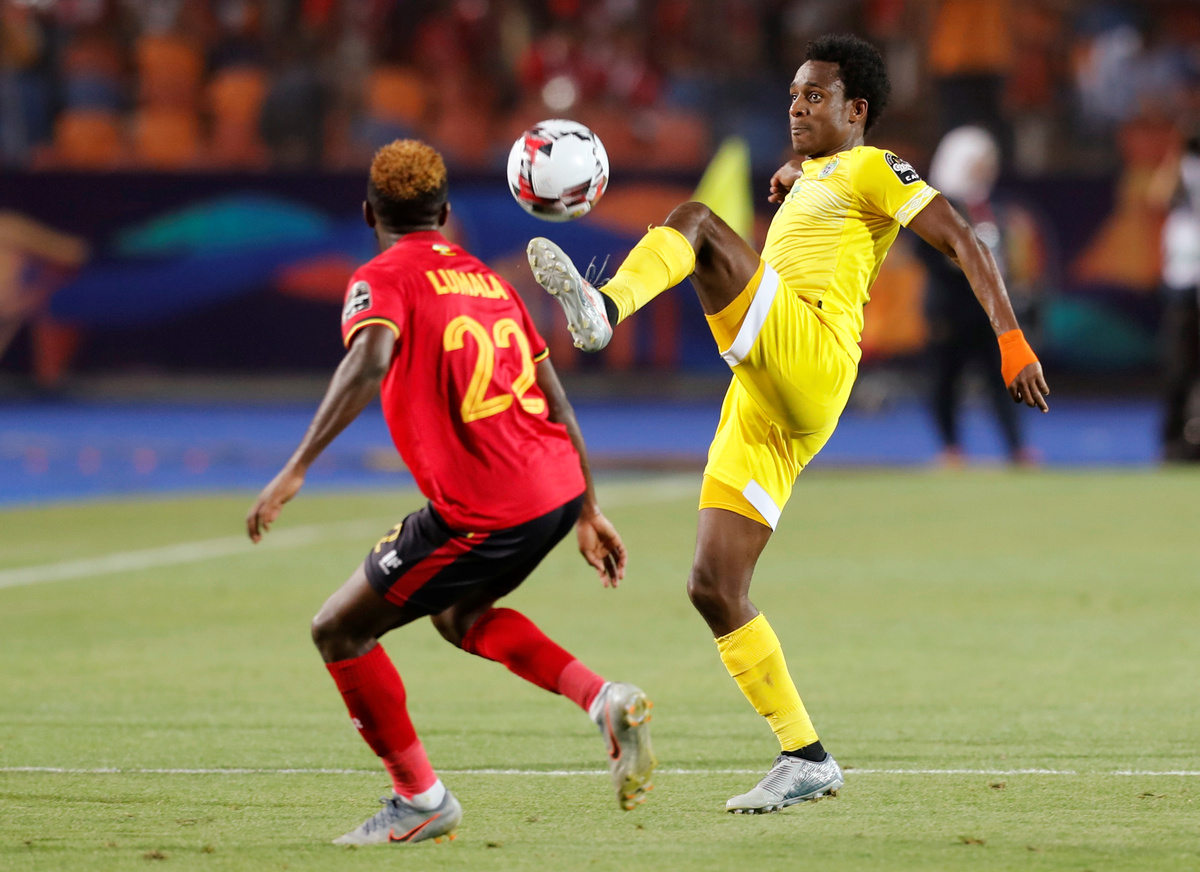 Soccer Football - Africa Cup of Nations 2019 - Group A - Uganda v Zimbabwe - Cairo International Stadium, Cairo, Egypt - June 26, 2019 Zimbabwe's Talent Chawapiwa in action with Uganda's Lumala Abdu REUTERS/Mohamed Abd El Ghany