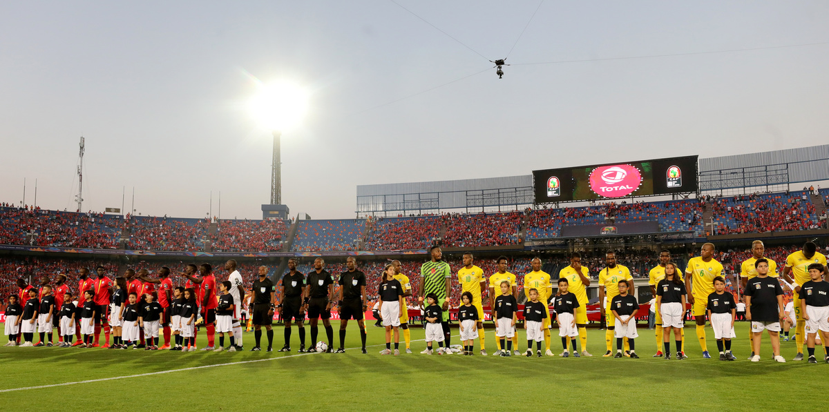 Soccer Football - Africa Cup of Nations 2019 - Group A - Uganda v Zimbabwe - Cairo International Stadium, Cairo, Egypt - June 26, 2019 General view of players from both teams and officials lined up before the match REUTERS/Mohamed Abd El Ghany