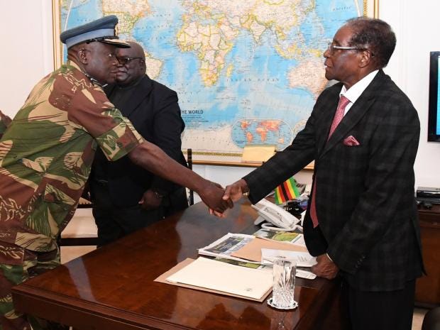 The moves come after an extraordinary and chaotic 24 hours in which Mr Mugabe apparently agreed to resign on state television but instead used the broadcast, sitting next to military commanders who are his captors, to vow that he will stay on in office to unify the nation and supervise reforms.