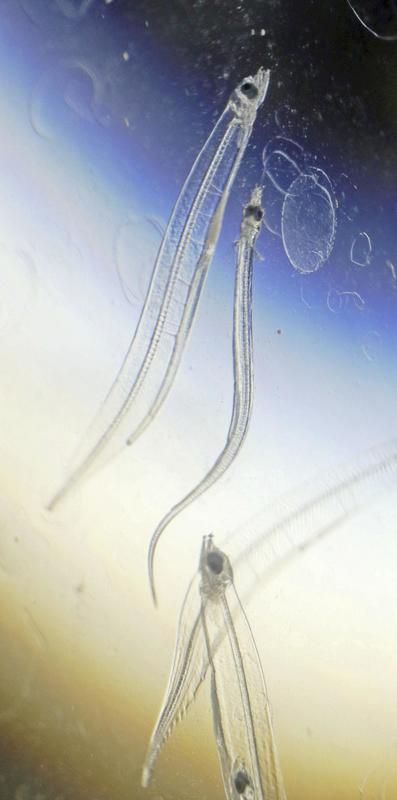 At the Shibushi Laboratory of the National Research Institute of Aquaculture, which is run by the Japan Fisheries Research and Education Agency, about 1 million artificially hatched glass eel larvae are being raised. The laboratory is located in Shibushi, Kagoshima Prefecture.