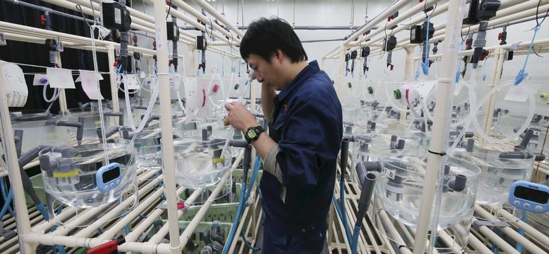 There are many aspects that remain mysterious about the ecology of Japanese eels, such as their spawning routes and what they eat. However, the institute succeeded in farm-raising eels through their complete life cycle in 2010 -- an achievement unprecedented in the world -- and is conducting a study for their commercialization.