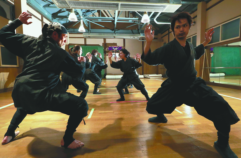 A stern voice bellowed at men and women in black ninja costumes deftly moving around a training hall at Hokkaido's Noboribetsu Date Jidaimura theme park, which stages ninja performances.