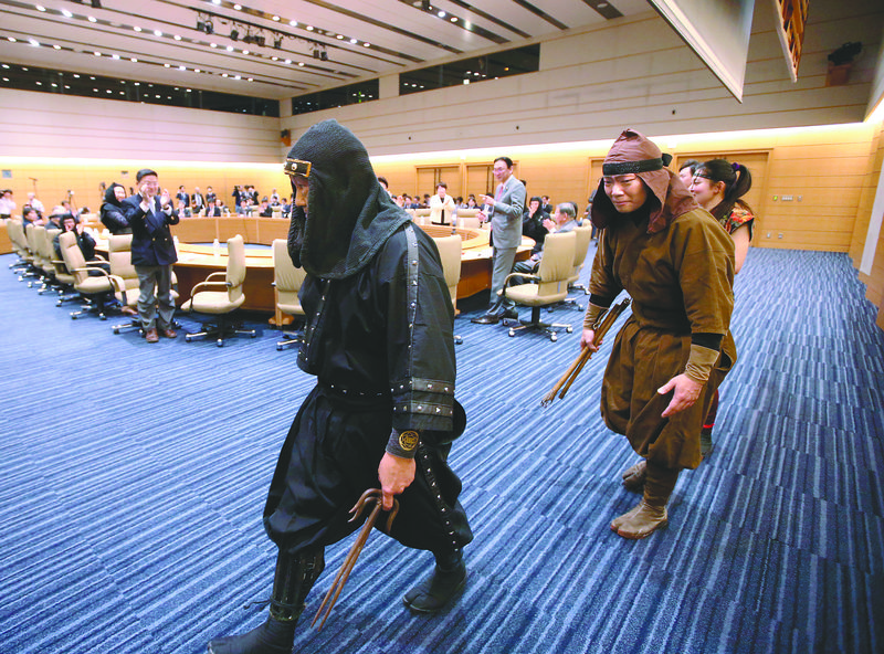 Lawmakers are eager to take advantage of the popularity of ninja to attract more foreign visitors. An inaugural meeting of the Ninja Giin Renmei, or ninja lawmakers federation, was held in the Diet building among Liberal Democratic Party members, led by Keiji Furuya.