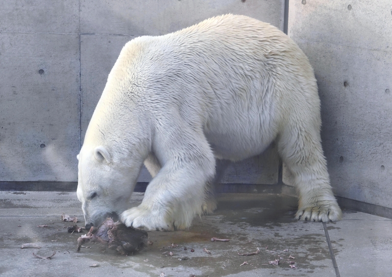 "Polar bears in the wild hunt seals and feed on them," said Seitaro Taguchi, a keeper at the aquarium. "We give animals in captivity opportunities to feed in environments as close as possible to their natural habitats, so that they can increase their amount of physical activity per day and spend time in a more lively manner, which is one of the purposes [of carcass feeding]."