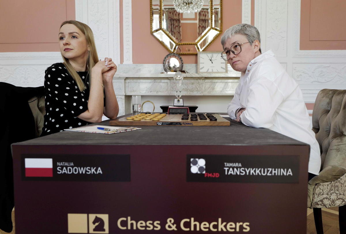 Match official Jacek Pawlicki removed the flag as Russia's Tamara Tansykkuzhina played Poland's Natalia Sadowska in the Womens World Championship in Warsaw on Tuesday.
