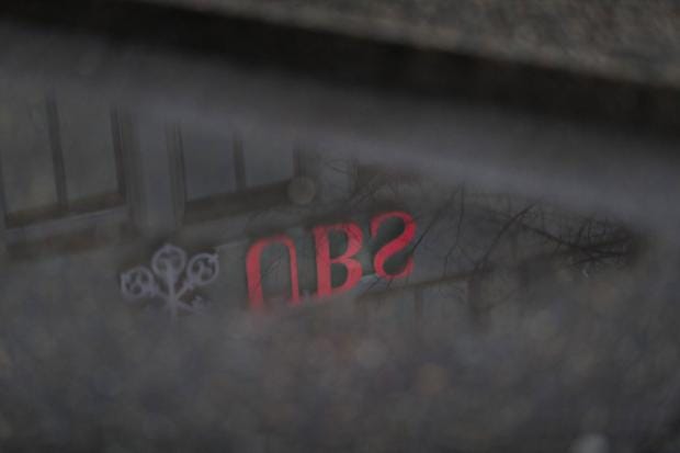 Images circulating online show two people lying flat on the ground outside a branch of the UBS bank.