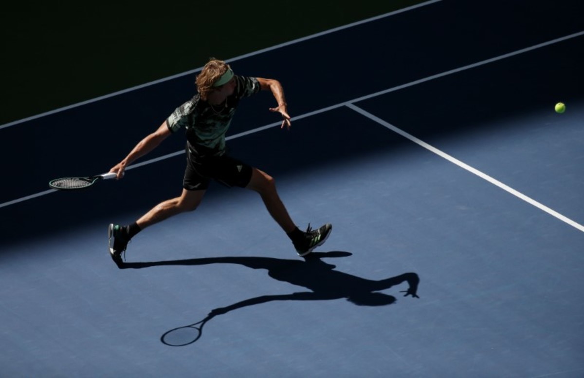 Alexander Zverev of Germany hits to Frances Tiafoe of the USA in the second round on day four of the 2019 U.S. Open tennis tournament at USTA Billie Jean King National Tennis Center. Mandatory Credit: Robert Deutsch-USA TODAY Sports
