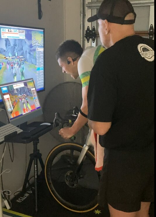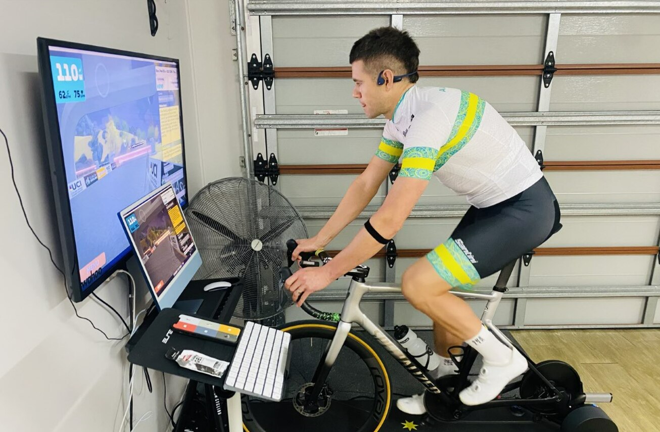 Marwood pulled on the green and gold lycra to race against other elite cyclists who pushed him to his physical limits — all from the comfort of his garage in north Queensland.