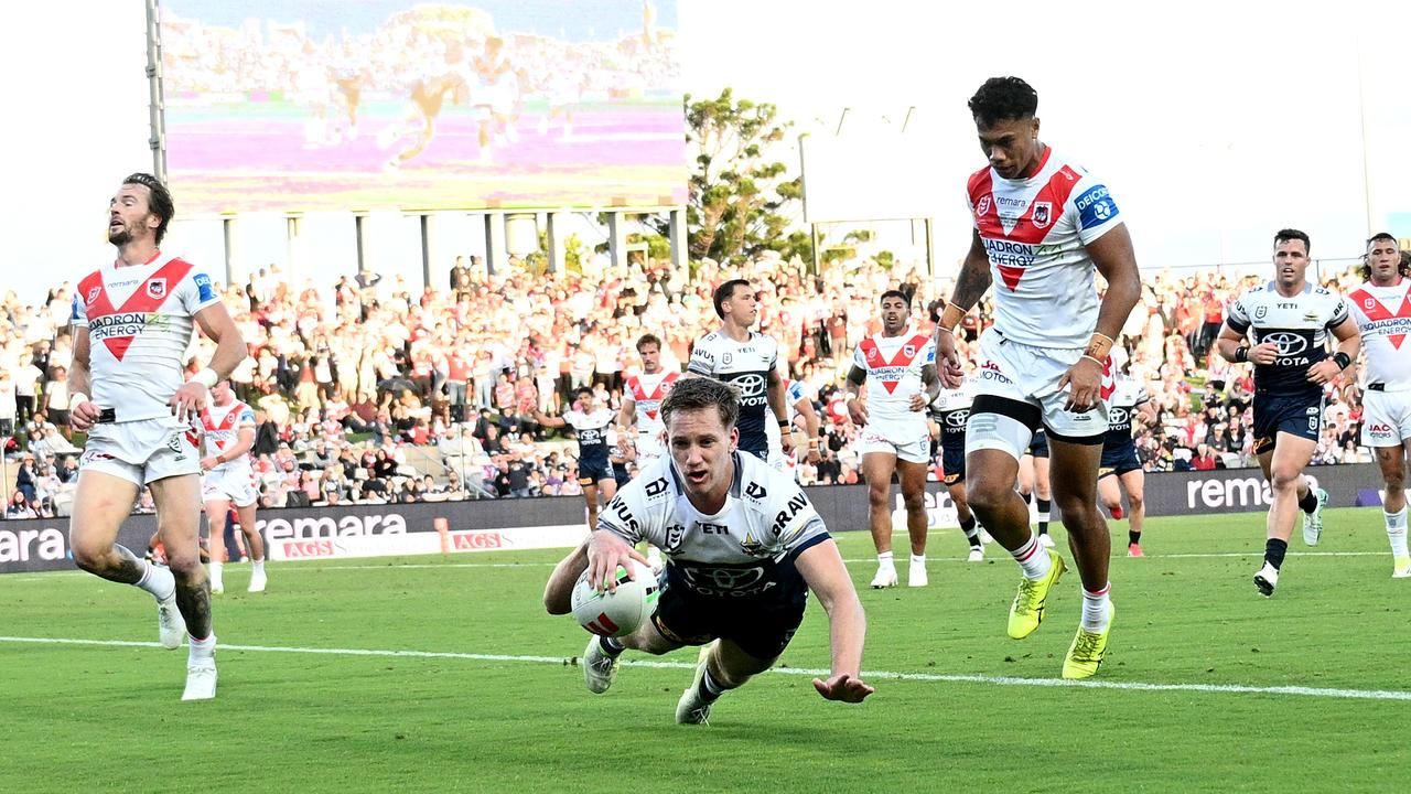 North Queensland fullback Scott Drinkwater has lit up Suncorp Stadium in a 35-31 win over a Brisbane side that lost two hookers to concussion.