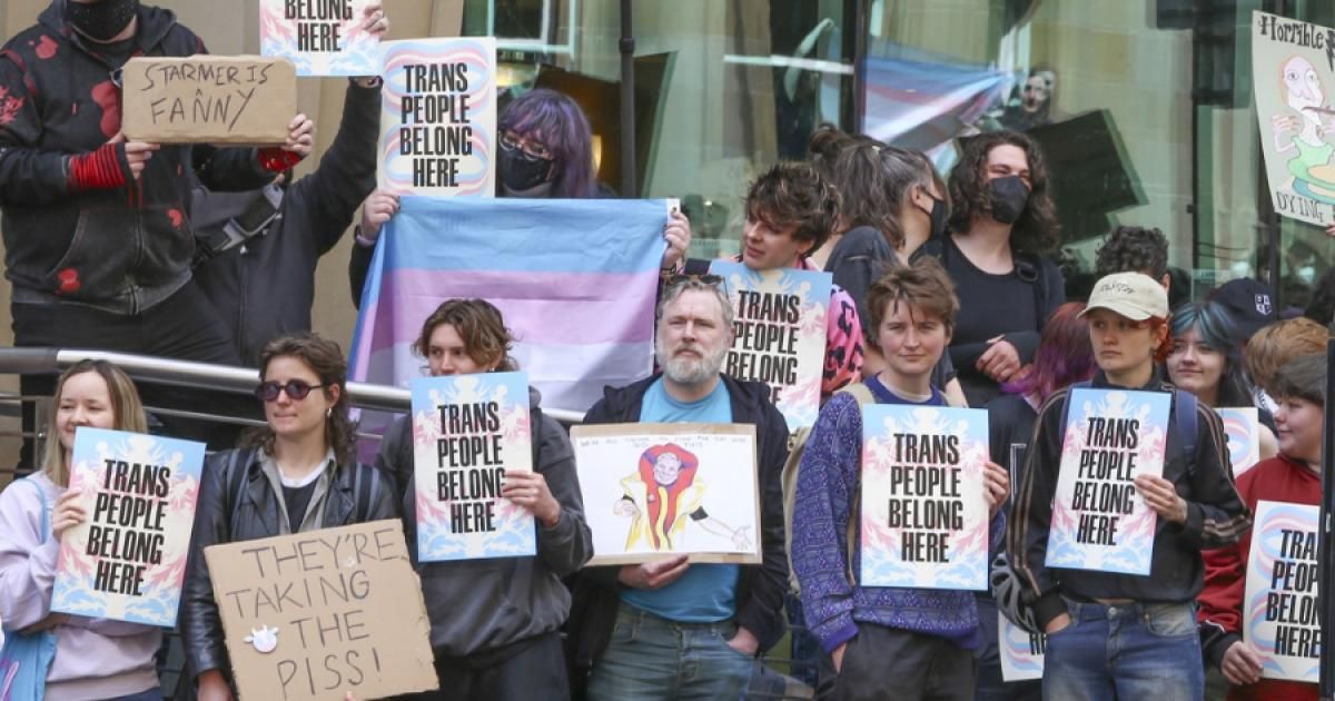 Hundreds of trans rights campaigners protest outside of EHRC Glasgow office